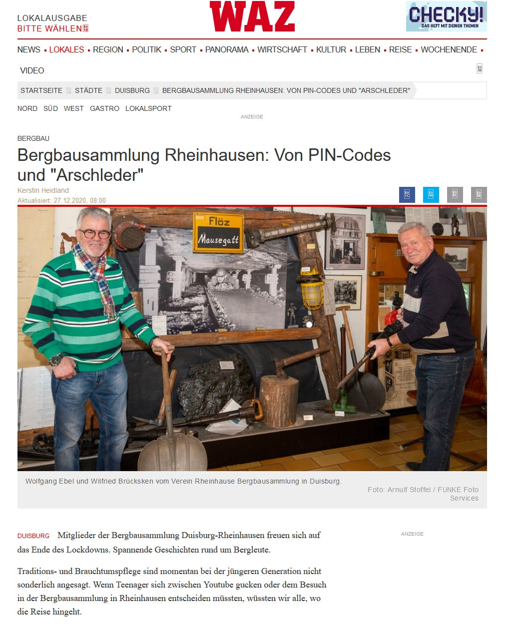 In der Online-Ausgabe der WAZ vom 16. Oktober erschien in der Reihe "Gemeinsam sind wir stark" ein ausführlicher Artikel über die Bergbausammlung.