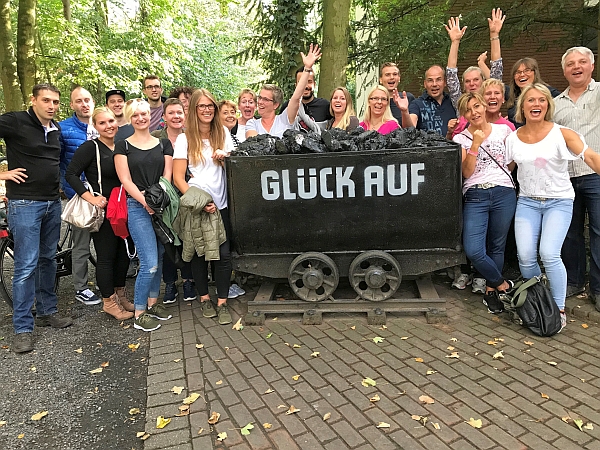 Mitarbeiter des Sparkassen-Kompetenz-Centers Rheinhausen-Bergheim besuchten uns am 17. August. Zum Abschluss des Besuches bedankte sich die Gruppe recht herzlich bei den ehrenamtlich tätigen Bergleute für die sehr interessanten Beiträge über die Bergbaugeschichte und die lebhaft gestaltete Führung durch die Rheinhauser Berbausammlung.