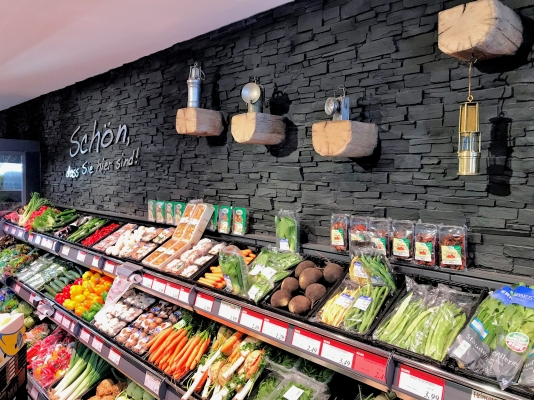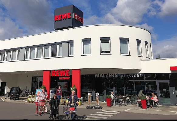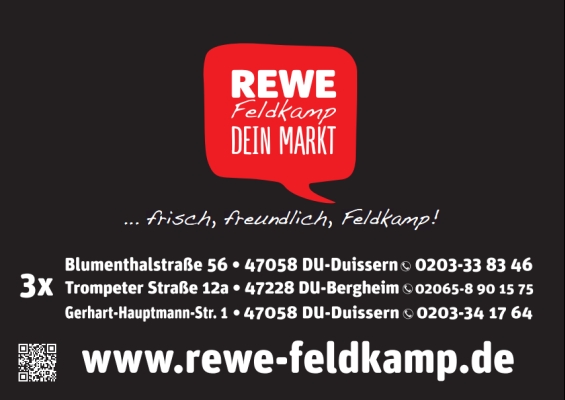 So wird der Kunde beim Betreten des REWE Markts mit 3 F und einem Glück auf! begrüßt. Die 3 F stehen übrigens für ...frisch, freundlich, Feldkamp!