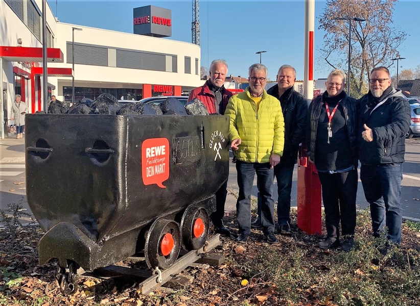 Die Rheinhauser Bergbausammlung hat einen neuen Sponsor gefunden - den REWE Markt Feldkamp. Ende 2017 eröffnete die neueste Filiale auf dem Gelände der ehemaligen Alfred-Hitz-Hauptschule an der Trompeter Str. in Rheinhausen-Bergheim. Die Familie Feldkamp ist an uns mit der Bitte herangetreten, die Verkaufsräume zur Erinnerung an den Bergbau in Rheinhausen mit entsprechenden Exponaten zu bestücken. Der Bitte sind wir natürlich gerne nachgekommen und haben etliche Gegenstände aus unserem Fundus als Dauerleihgabe zur Verfügung gestellt. Sie sind jetzt im Markt zu bewundern.