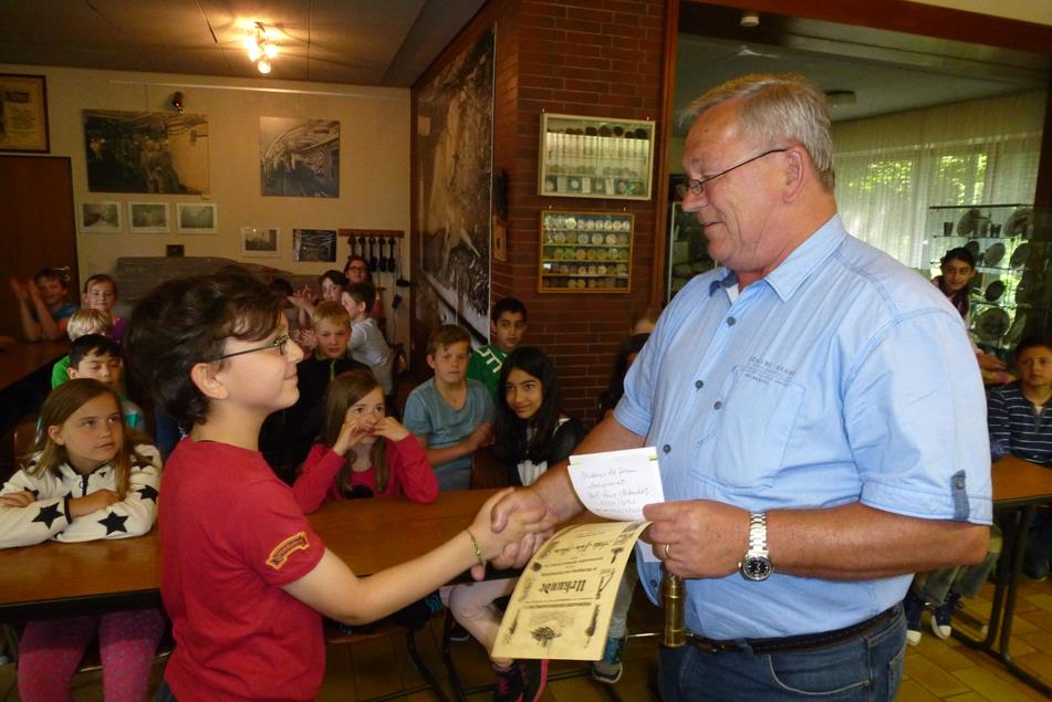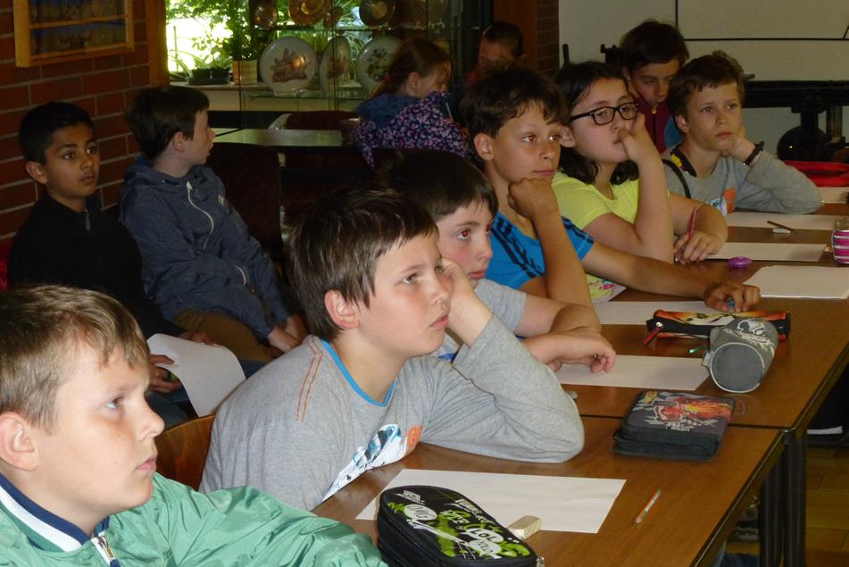 Die Klasse 5b der Lise-Meitner-Gesamtschule besuchte unsere Sammlung am 31. Mai mit dem Lehrerinnen Tina Imenkamp und Heide Vorberg. Im Rahmen einer kleinen Feierstunde wurden die Sieger des Aufsatzwettbewerbes am Sonntag den 02. Juni geehrt.