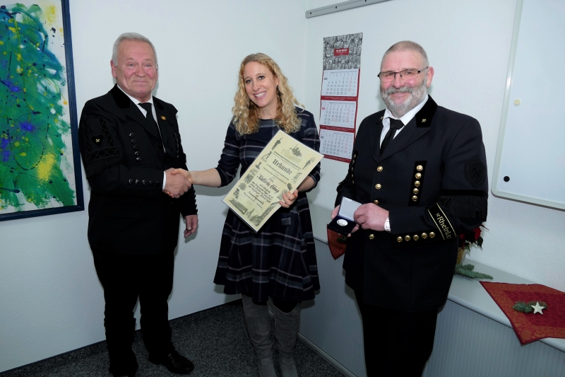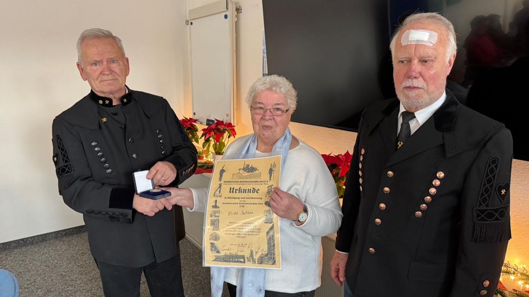 Im Rahmen der Barbarafeier der Bergbausammlung am 6. Dezember wurde Kathrin Hänig mit Verdienstmedaille und Urkunde in einem feierlichen Rahmen in den Räumen der Caritas Werkstätten Niederrhein in Rheinhausen geehrt.