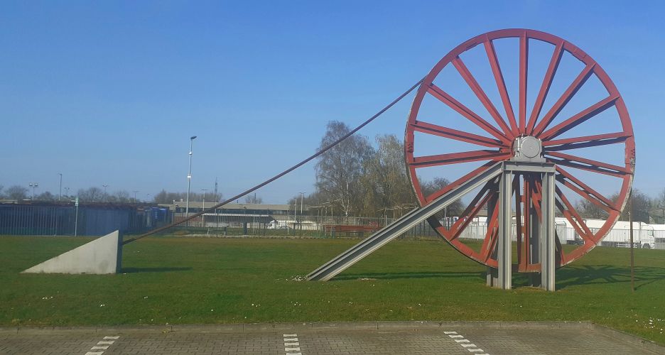 in Bergheim in festlichen Rahmen eine Seilscheibe aufgestellt. Sie stammt vom Bergwerk Niederberg in Neukirchen-Vluyn.