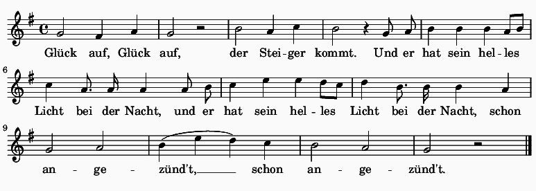 Das Lied der deutschen Bergleute "Glück auf, Glück auf! Der Steiger kommt" ist seit dem 15.März 2023 Immaterielles Kulturerbe in Deutschland. Die Kulturministerkonferenz hat entschieden, es in das bundesweite UNESCO-Verzeichnis aufzunehmen, wie Sachsens Ressortchefin Barbara Klepsch in Dresden mitteilte. Es sei "die Hymne der deutschen Bergleute und integraler Bestandteil der in Sachsen besonders lebendigen Bergbautraditionen".