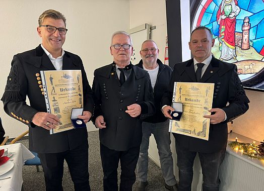 Traditionsgemäß zeichnen wir im Rahmen dieser Feier Personen aus, die sich im Jahr 2023 um die Bergbausammlung verdient gemacht haben. Dieses Jahr fiel die Wahl auf Volker Brücksken und Markus Türke. Beide haben den Verein maßgeblich bei der Organisation und Durchführung unserer 40-Jahre-Feier im Mai diesen Jahres unterstützt.
