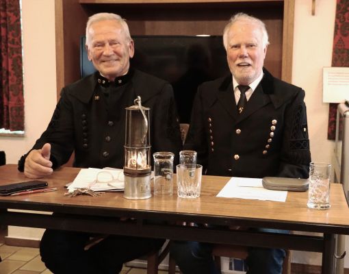 Joachim Schulze (im Bild links), Ehrenvorsitzender und Gründer der Rheinhauser Bergbausammlung, wurde am 17. März anlässlich seines 80. Geburtstag in der Sammlung geehrt.
