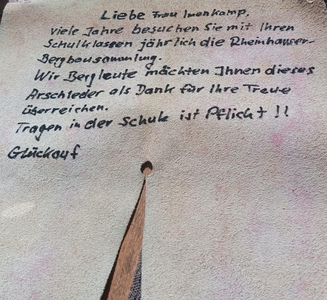 Unsere Wahl fiel auf ein wichtiges Hilfssmittel des Bergmanns für die Arbeit unter Tage: Das Arschleder