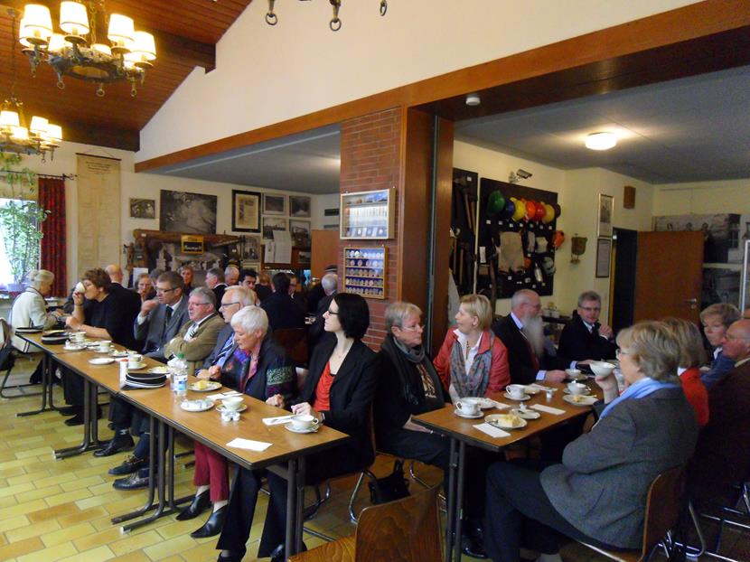 begrüßte 45 Personen zu Kaffee und Kuchen mit einer anschließenden Führung.