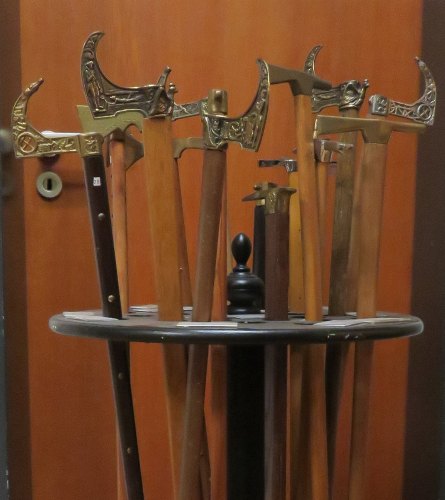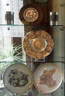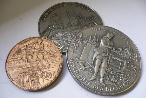 Wir zeigen umfangfreiche Sammlungen von Schnupftabakdosen, Gedenktellern, Medaillen, Häckeln, und künstlerischen Darstellungen von Bergbaumotiven. Häckel sind übrigens Handstöcke, die üblicherweise Steiger im Bergbau zu festlichen Anlässen oder Bergparaden mitführen.