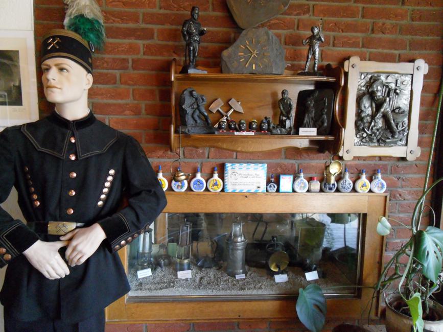 Einen großen Raum nimmt auch die traditionelle Tracht der Bergleute, der Bergkittel ein. Er wird von Bergleuten bei Feierlichkeiten sowie von Knappenvereinen, Bergmannschören und ähnlichen Vereinen zur Brauchtumspflege bei öffentlichen Auftritten regelmäßig getragen.Und dann es gibt auch noch das sogenannte Mutterklötzchen zu sehen: Holzreste der Zeche, das die Bergleute nach Ende der Schicht in der Arbeitstasche mit nach Hause nahmen. Dort wurde es zum Anheizen des Kohleofens verwendet.