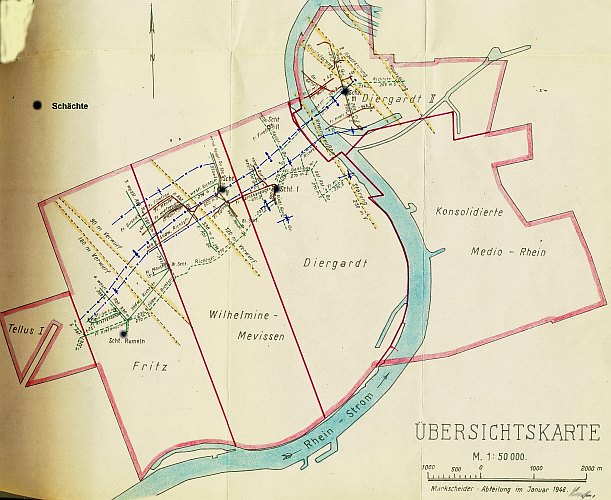 Wir zeigen Originaldokumente, die mit der Zechengeschichte von Diergardt-Mevissen verbunden sind: Persönliche Erinnerungsstücke und Unterlagen der Zechenverwaltung, Landkarten und Pläne, Risszeichnungen...