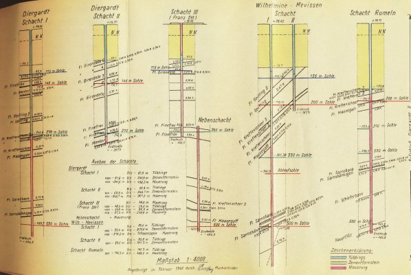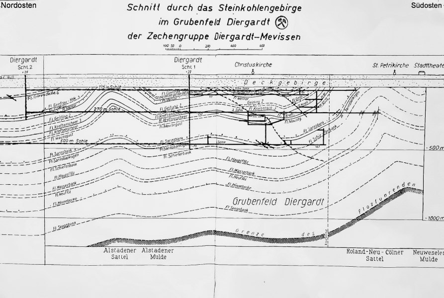 Alte Pläne, Schnittzeichnungen und Karten dokumentieren die Lage und die Unter-Tage-Welt des Bergwerks Diergardt-Mevissen.